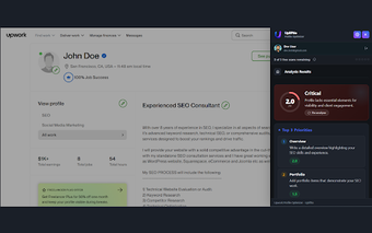 Upliftio is a free Chrome add-on designed to enhance Upwork freelancer profiles using AI technology. This tool analyzes eight critical sections of your profile, including your photo, title, bio, and skills, providing a comprehensive score and actionable steps for improvement. Users can access a floating 'Upliftio Profile Scoring' button on any Upwork profile page to initiate an instant analysis without the need for manual data entry.